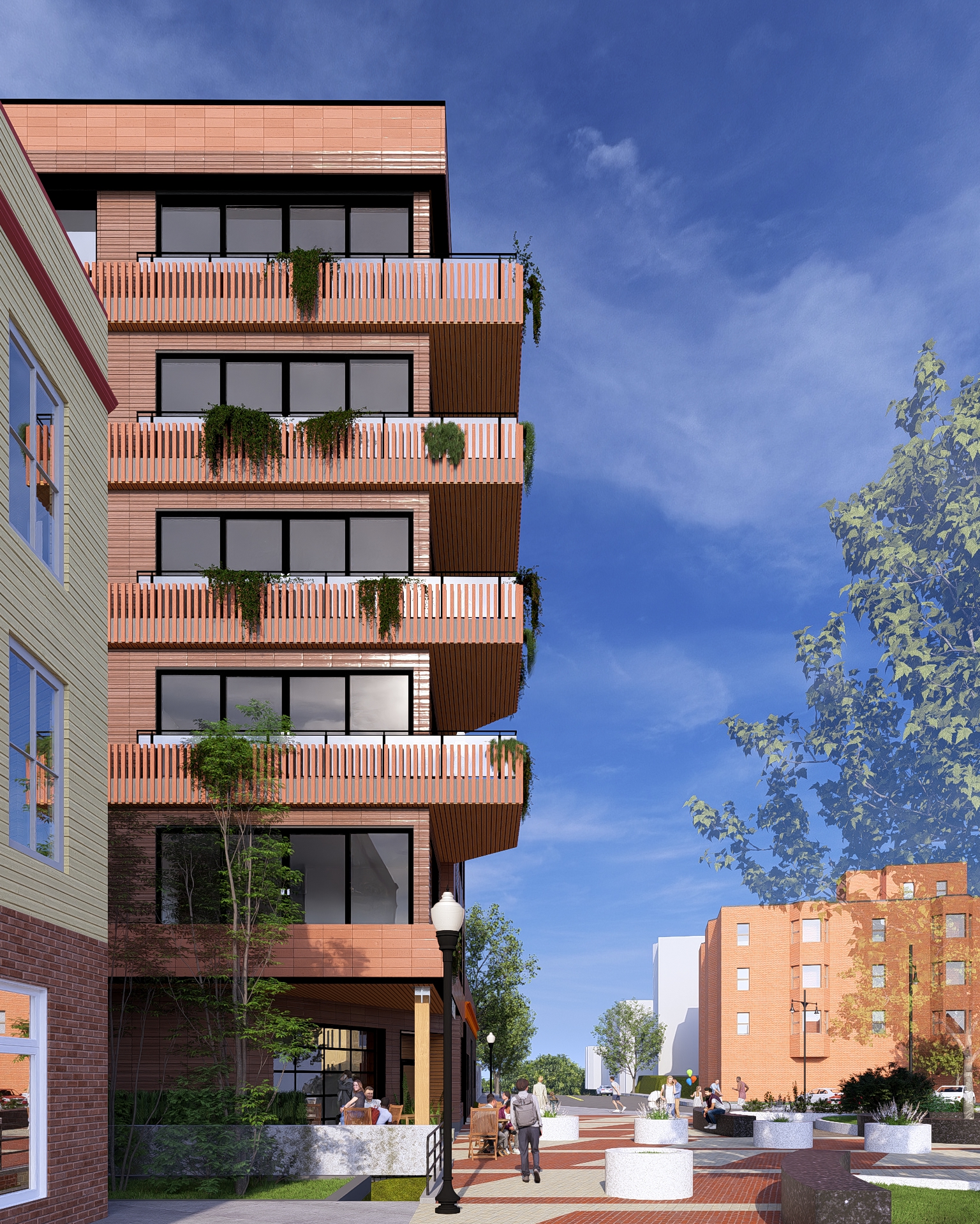 Our project at 555 Talbot Ave is located in the Ashmont neighborhood in Dorchester. The project looks to re-energize Peabody Square though a simple, well detailed, and bold architectural response that is worthy of the square’s rich history. This new thirty-three apartment building is a true transit orientated development, as it is steps away from he Ashmont T-stop. The ground level will also feature a new restaurant space that will re-ignite the public space in front of the property.